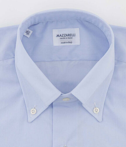 Light blue Oxford fabric shirt with hand-stitched armholes, long sleeves and rounded hem. Classic shirt handcrafted exclusively in Italy. Customise your shirt: choose collar, cuff and size. Customise your shirt: choose collar, cuff and size.