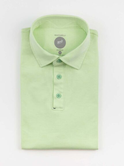 Short-sleeved polo shirt with buttonless Derby collar, red mélange, in cotton and linen blend fabric. Handmade exclusively in Italy.