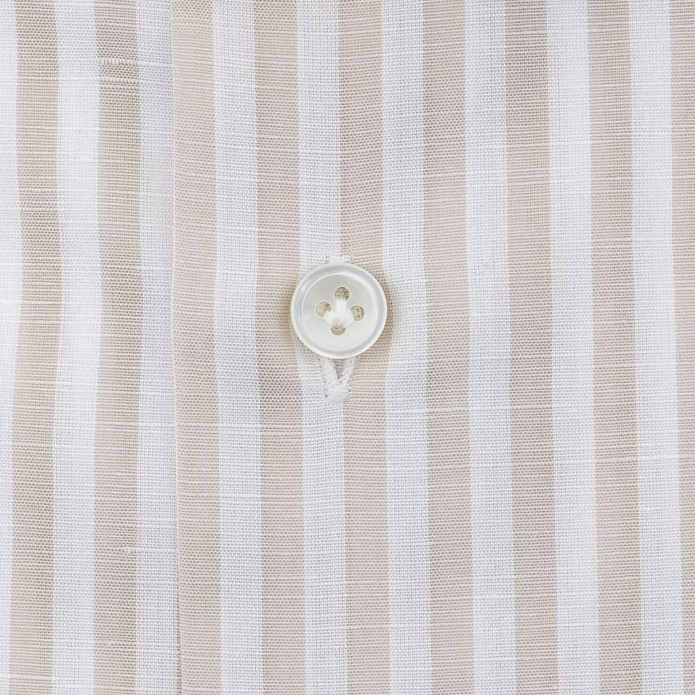 Long-sleeved shirt in cotton and linen blend with white and beige stripes, a round cuff and mother-of-pearl buttons. Shirt handcrafted exclusively in Italy.