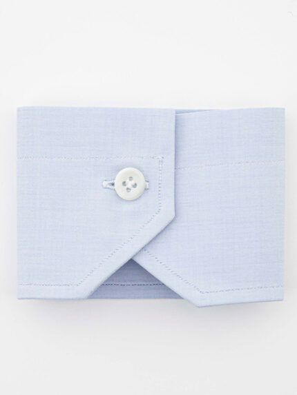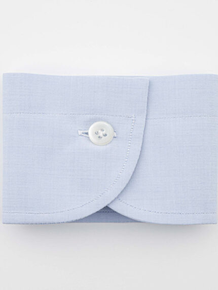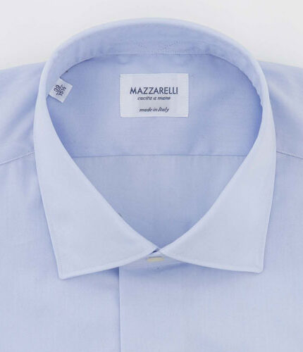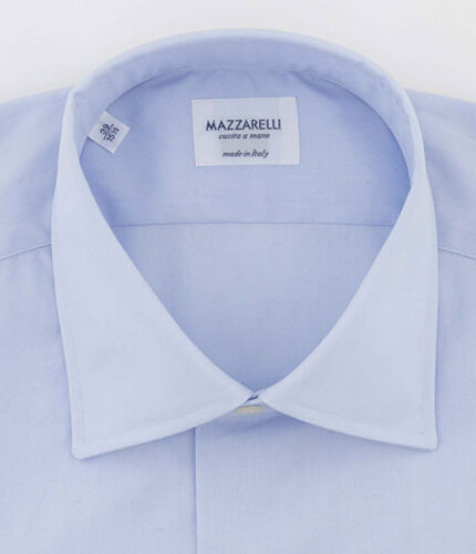 White and light blue Journey-poplin striped shirt by Thomas Mason with hand-stitched armholes, long sleeves, and rounded hem. This shirt, designed for the stylish and cosmopolitan man, can be stored in a suitcase for a long time without compromising its appearance, thanks to its specific anti-fold fabric. Classic shirt handcrafted exclusively in Italy. Customise your shirt: choose collar, cuff and size.