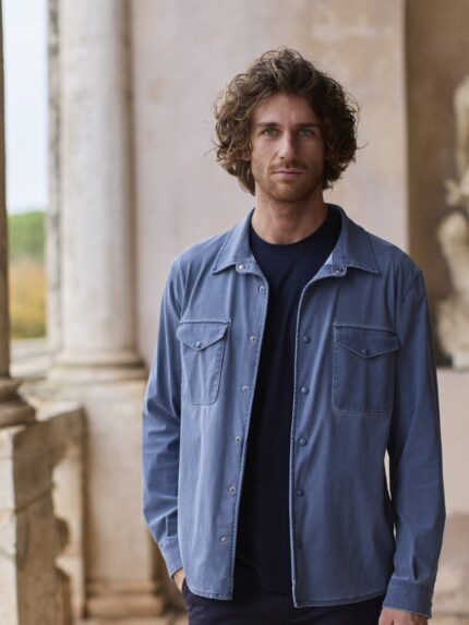 Unlined over shirt in grey-blue technical fabric