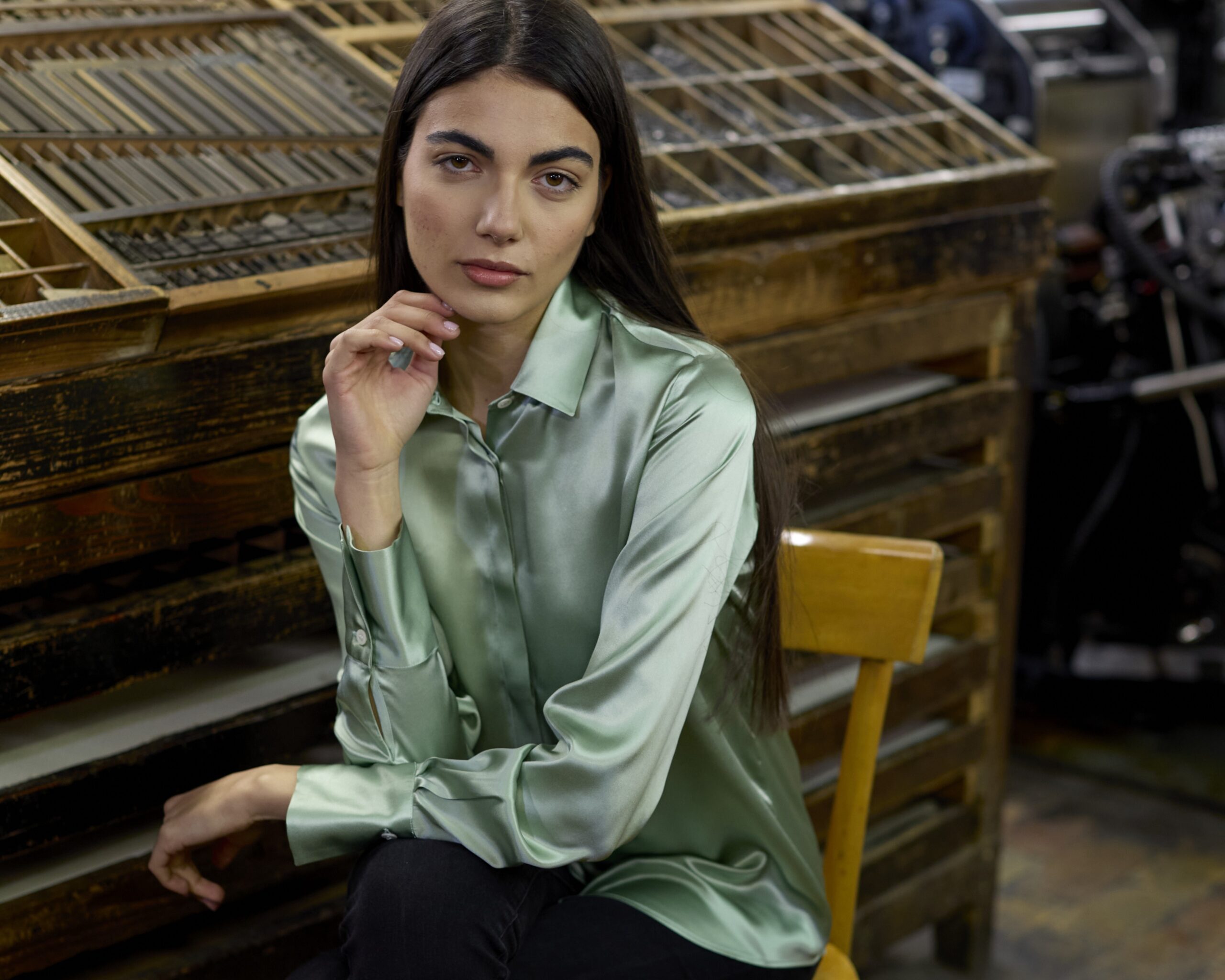 Ci sono capi che non seguono le mode, ma le attraversano con grazia. Capi che si fanno notare in silenzio, con la sola forza della loro bellezza. Mari, la nostra camicia da donna in raso di seta, è uno di questi, il cui nome è un omaggio a mia nonna Maria, donna straordinaria, che amava indossare le camicie di seta, e che insieme a suo marito, nonno Marino, ha fondato con amore e sacrificio l’azienda a cui oggi siamo orgogliosi di appartenere.