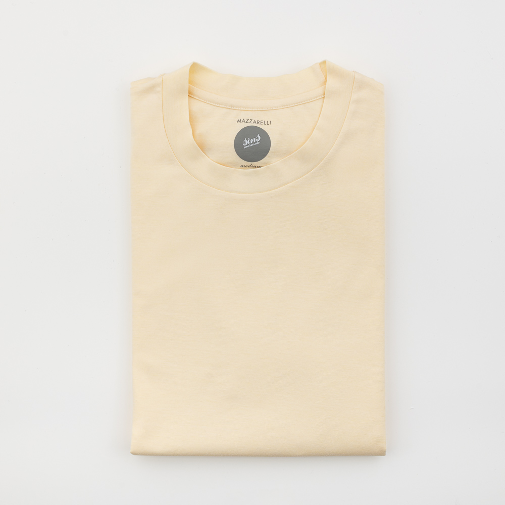 T-shirt girocollo manica corta in tessuto performante giallo limone in misto cotone. Estremamente soffice al tatto, questo capo dona a chi lo indossa una piacevole sensazione di freschezza, comfort e massima libertà di movimento. Realizzata in modo artigianale esclusivamente in Italia.