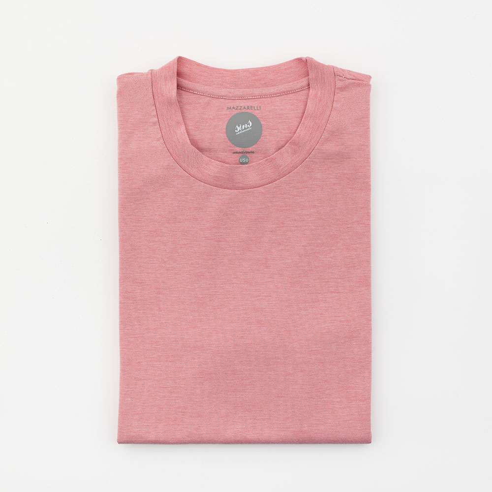 T-shirt girocollo manica corta in tessuto performante rosso mélange in misto cotone. Estremamente soffice al tatto, questo capo dona a chi lo indossa una piacevole sensazione di freschezza, comfort e massima libertà di movimento. Realizzata in modo artigianale esclusivamente in Italia.